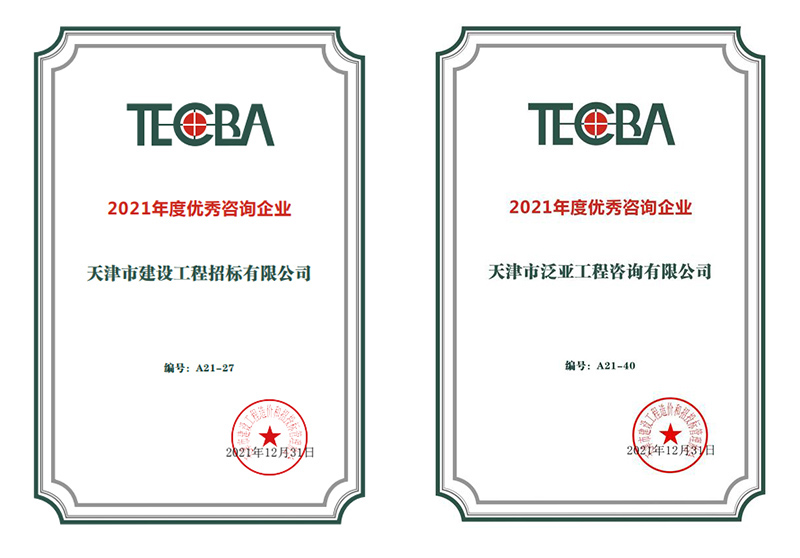 近日,從天咨公司下屬公司傳來喜報(bào),在天津市建設(shè)工程造價(jià)和招投標(biāo)管理協(xié)會公布的2021年度優(yōu)秀咨詢企業(yè)獎項(xiàng)的評選中,天咨下屬泛亞公司和招標(biāo)公司雙雙榮獲“2021年度優(yōu)秀咨詢企業(yè)”榮譽(yù)稱號。