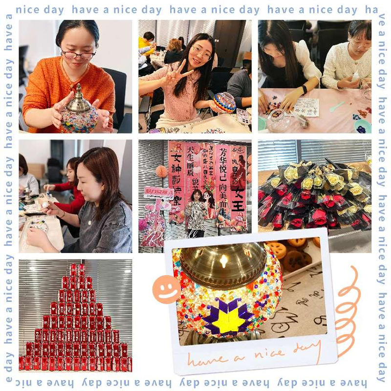 天津咨詢本部工會和建設招標公司工會組織了“指尖上的藝術盛宴,女神的專屬時光”馬賽克土耳其臺燈DIY活動。在專業老師的指導下,女職工們挑選自己喜歡的馬賽克瓷片,通過拼貼、黏合等工藝,將一塊塊小小的馬賽克瓷片變成美麗的臺燈裝飾。大家自由發揮創意,從顏色的搭配到瓷片的排列方式,每一個細節都展現了個人獨特的審美和魅力?;顒幼詈螅毠兗娂婞c亮自己的燈光,在浪漫迷人的燈光中合影留念。