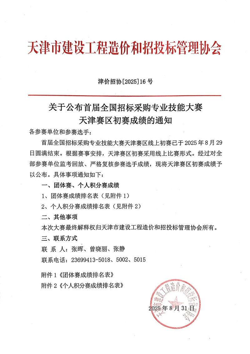 近日,由天津市建設(shè)工程造價和招投標(biāo)管理協(xié)會舉辦的首屆全國招標(biāo)采購專業(yè)技能大賽天津賽區(qū)比賽圓滿落幕。此次天津賽區(qū)匯聚了全市25家優(yōu)秀企業(yè)和140名行業(yè)精英同臺競技,天津咨詢所屬泛亞咨詢在激烈競爭中脫穎而出,斬獲團(tuán)體賽桂冠,武宇哲、石恩婧、張典等3名員工成功躋身全市個人積分賽排名前十,充分彰顯了泛亞咨詢在招標(biāo)采購領(lǐng)域的專業(yè)實力與人才優(yōu)勢。