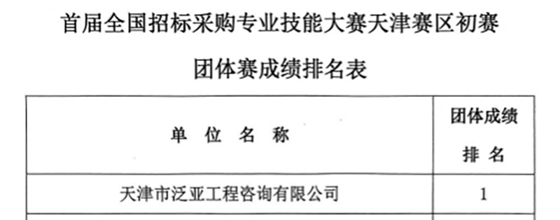 喜 報——泛亞咨詢斬獲首屆全國招標(biāo)采購專業(yè)技能大賽 天津賽區(qū)團(tuán)體及個人雙第一
