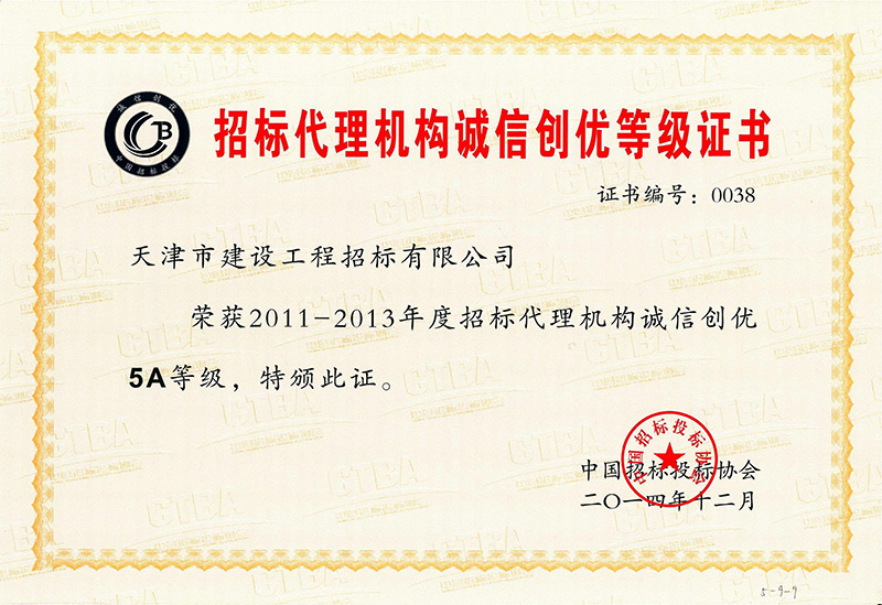 2011-2013年度招標代理機構(gòu)誠信創(chuàng)優(yōu)5A等級