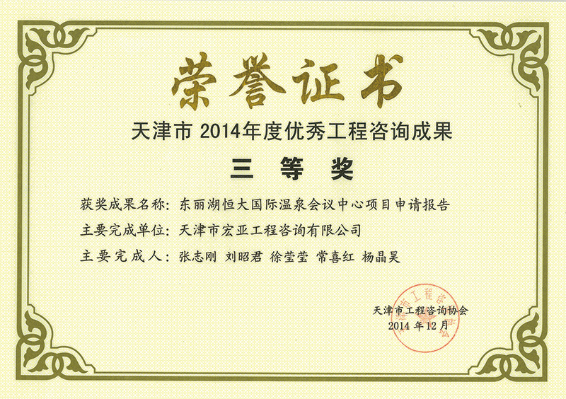 優(yōu)秀咨詢成果三等獎(2014)