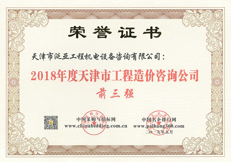 2018天津市造價前三